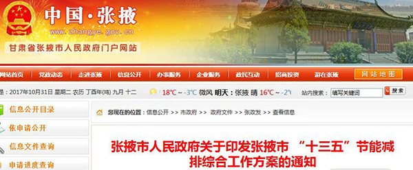 關于張掖市“十三五”節(jié)能減排綜合工作方案