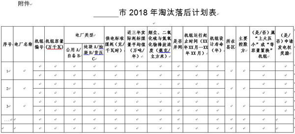 二、嚴(yán)格執(zhí)行國家及我省制定的煤電淘汰落后標(biāo)準(zhǔn),結(jié)合各市前期統(tǒng)計(jì)的“十三五”期間淘汰機(jī)組的摸底情況,對轄區(qū)內(nèi)煤電機(jī)組進(jìn)行嚴(yán)格篩查,根據(jù)篩查情況認(rèn)真填報(bào)《 ? ?市2018年淘汰落后計(jì)劃表》,報(bào)送計(jì)劃中要說明列入淘汰計(jì)劃機(jī)組是否申請發(fā)電權(quán)獎勵。于2018年1月底前將本市2018年電力行業(yè)淘汰落后計(jì)劃以正式文件報(bào)省經(jīng)信委。