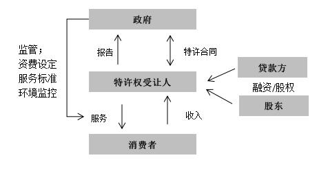 特許經(jīng)營權(quán)允許社會資本運(yùn)營商(受讓人)在指定區(qū)域內(nèi)負(fù)資全商提供公共服務(wù),包括系統(tǒng)的運(yùn)營、維護(hù),征收費(fèi)用,管理,建設(shè)和修復(fù)等,同時(shí),運(yùn)營商負(fù)責(zé)所有資本投資。盡管社會資本運(yùn)營商負(fù)赍提供資產(chǎn),該資產(chǎn)即使在特許期內(nèi)也屬于政府所有。政府負(fù)確定實(shí)施標(biāo)準(zhǔn),并確保受讓人能達(dá)到標(biāo)準(zhǔn)。從本質(zhì) 上講,待許經(jīng)營模式將政府的角色從服務(wù)提供者轉(zhuǎn)變?yōu)榉?wù)價(jià)格和質(zhì)量的規(guī)范者。