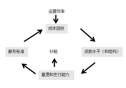 在PPP項(xiàng)目的資費(fèi)設(shè)計(jì)中,需要平衡以下目標(biāo):(1)目標(biāo)服務(wù)標(biāo)準(zhǔn)及相關(guān)成本;(2)公眾消費(fèi)者的支付意愿及能力;(3)成本回收方式;(4)社會資本的經(jīng)濟(jì)要求(投資利潤率);(5)對政府補(bǔ)貼的需求及得到的可能性。各因素的正確組合可以通過項(xiàng)目模型的重復(fù)優(yōu)化來確定。資費(fèi)設(shè)計(jì)循環(huán)過程如下圖所示:
