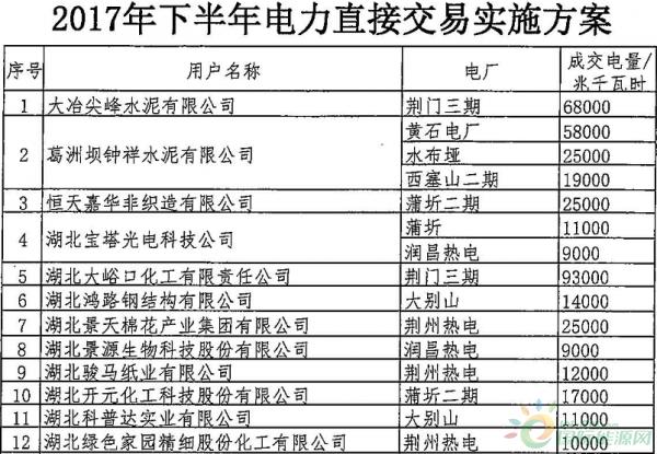 湖北發(fā)布:《2017年下半年電力直接交易實施方案》