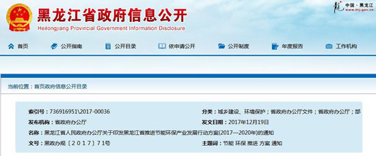 黑龍江省人民政府辦公廳關(guān)于印發(fā)黑龍江省推進(jìn)節(jié)能環(huán)保產(chǎn)業(yè)發(fā)展行動方案(2017—2020年)的通知