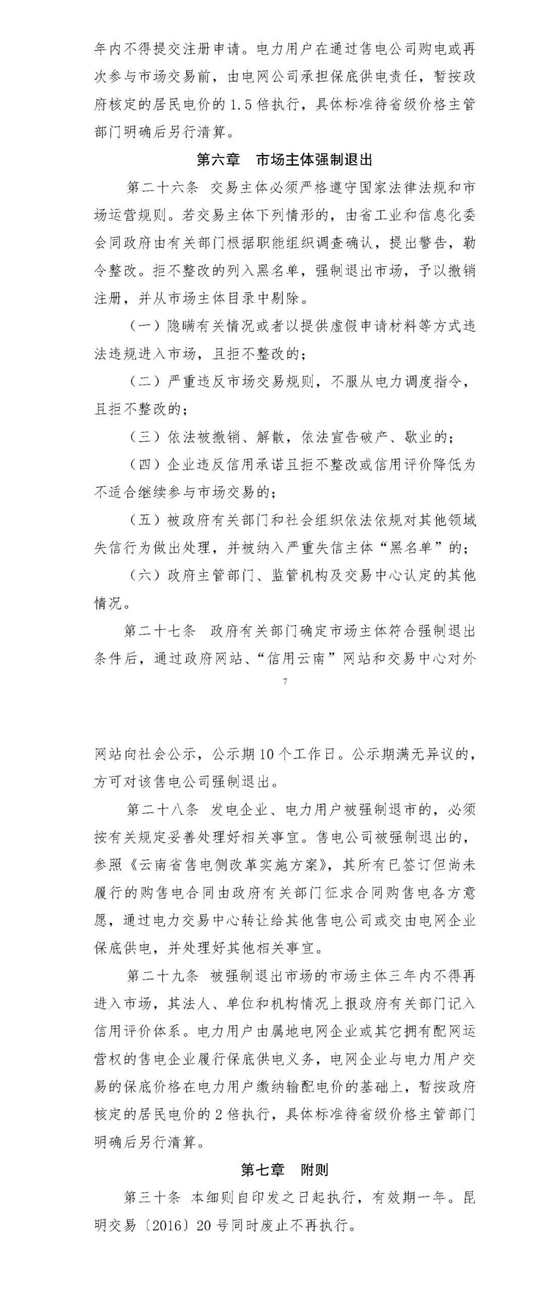 昆明電力交易中心日前發(fā)布了《云南電力市場主體準(zhǔn)入與退出管理實施細(xì)則》,發(fā)電企業(yè)的準(zhǔn)入條件:取得電力業(yè)務(wù)許可證(發(fā)電類)的發(fā)電廠及發(fā)電機(jī)組。電力用戶:符合電網(wǎng)接入規(guī)范,滿足電網(wǎng)安全技術(shù)要求的用電實體。擁有自備電源的用戶應(yīng)按規(guī)模承擔(dān)國家政府性基金及附加、政策性交叉補(bǔ)貼和系統(tǒng)備用費(fèi)等相關(guān)費(fèi)用。售電公司、擁有售電網(wǎng)運(yùn)營權(quán)的售電公司執(zhí)行《云南省售電側(cè)改革實施方案》確定的準(zhǔn)入條件。