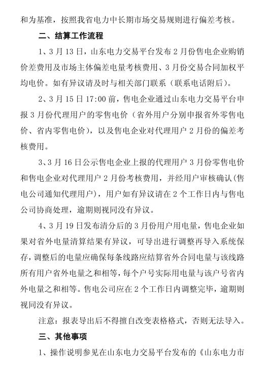 日前,山東電力交易中心發(fā)布《關(guān)于開展2018奶奶3月份電力交易電費(fèi)結(jié)算工作的通知》(以下簡(jiǎn)稱“通知”)。通知中稱,參與省外交易的電力用戶和售電企業(yè),省外交易電量?jī)?yōu)先結(jié)算。參加省外交易電力用戶的省內(nèi)電量以及只參加省內(nèi)交易的電力用戶結(jié)算執(zhí)行省內(nèi)所有交易合同價(jià)格的加權(quán)平均價(jià)。詳情如下: