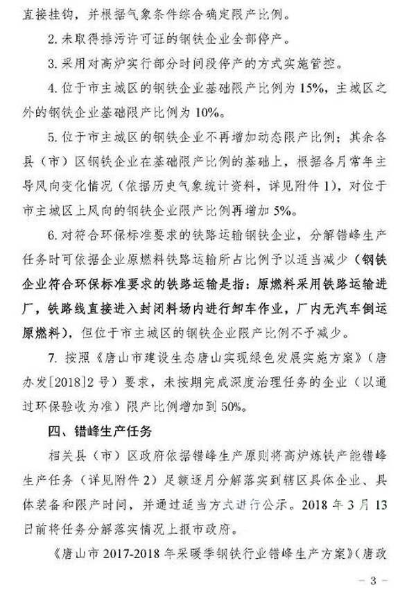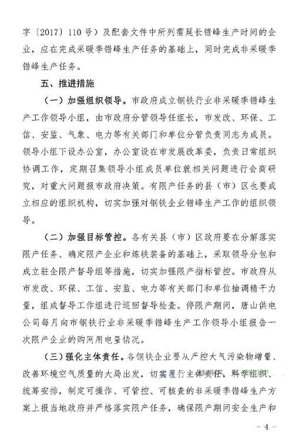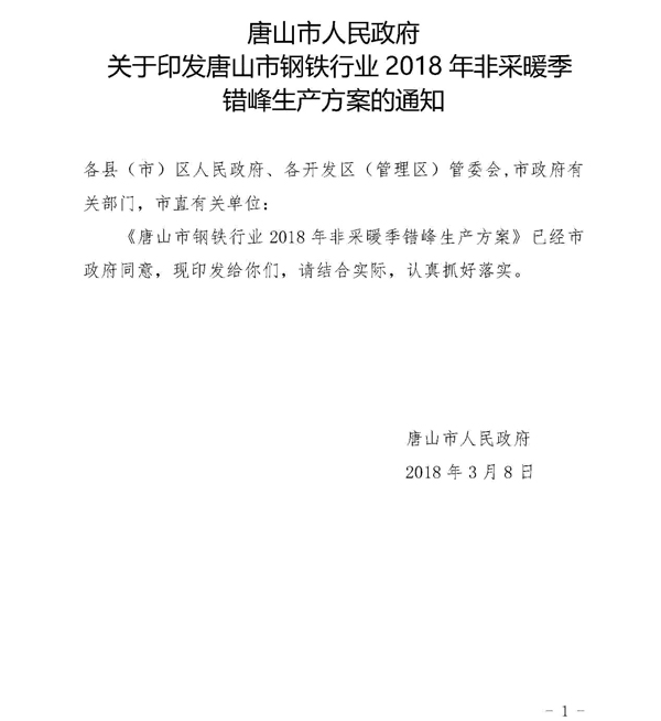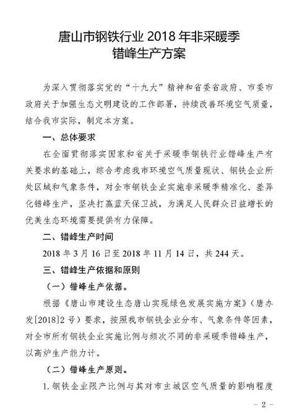 唐山市鋼鐵行業(yè)2018年采取非采暖季錯(cuò)峰生產(chǎn)