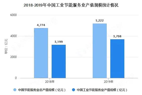 近年來,節(jié)能服務(wù)產(chǎn)業(yè)總產(chǎn)值不斷增長(zhǎng),呈逐年上漲趨勢(shì)。中國節(jié)能協(xié)會(huì)數(shù)據(jù)顯示,2019年我國節(jié)能服務(wù)產(chǎn)業(yè)總產(chǎn)值達(dá)5222億元,同比增長(zhǎng)9.38%。根據(jù)《“十三五”節(jié)能環(huán)保產(chǎn)業(yè)發(fā)展規(guī)劃》,到2020年節(jié)能服務(wù)業(yè)總產(chǎn)值達(dá)到6000億元。我國節(jié)能服務(wù)行業(yè)潛力巨大。