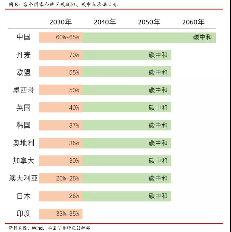 各個國家和地區(qū)碳減排、碳中和承諾目標: