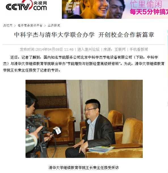 ????? 近日,記者了解到,國內(nèi)知名節(jié)能服務(wù)公司北京中科宇杰節(jié)電設(shè)備有限公司(下稱:中科宇杰)與清華大學(xué)繼續(xù)教育學(xué)院聯(lián)合舉辦“節(jié)能增效與創(chuàng)新經(jīng)營(yíng)高級(jí)研修班”。為此,清華大學(xué)繼續(xù)教育學(xué)院王長(zhǎng)榮主任接受了記者的專訪。