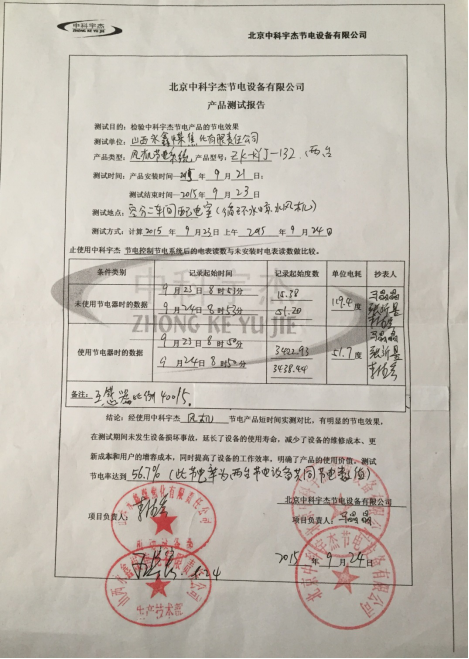 經(jīng)過山西永鑫管理人員的嚴(yán)格審核,中科宇杰智能風(fēng)機(jī)節(jié)電系統(tǒng)的節(jié)能效率達(dá)到了56.7%,遠(yuǎn)遠(yuǎn)超過了企業(yè)的預(yù)期,山西永鑫的管理人員對(duì)中科宇杰的工程人員表示感謝和贊揚(yáng)。在要求如此嚴(yán)格的情況下,中科宇杰仍然能設(shè)計(jì)出如此高效能的節(jié)能系統(tǒng),獲得很好的經(jīng)濟(jì)效益。