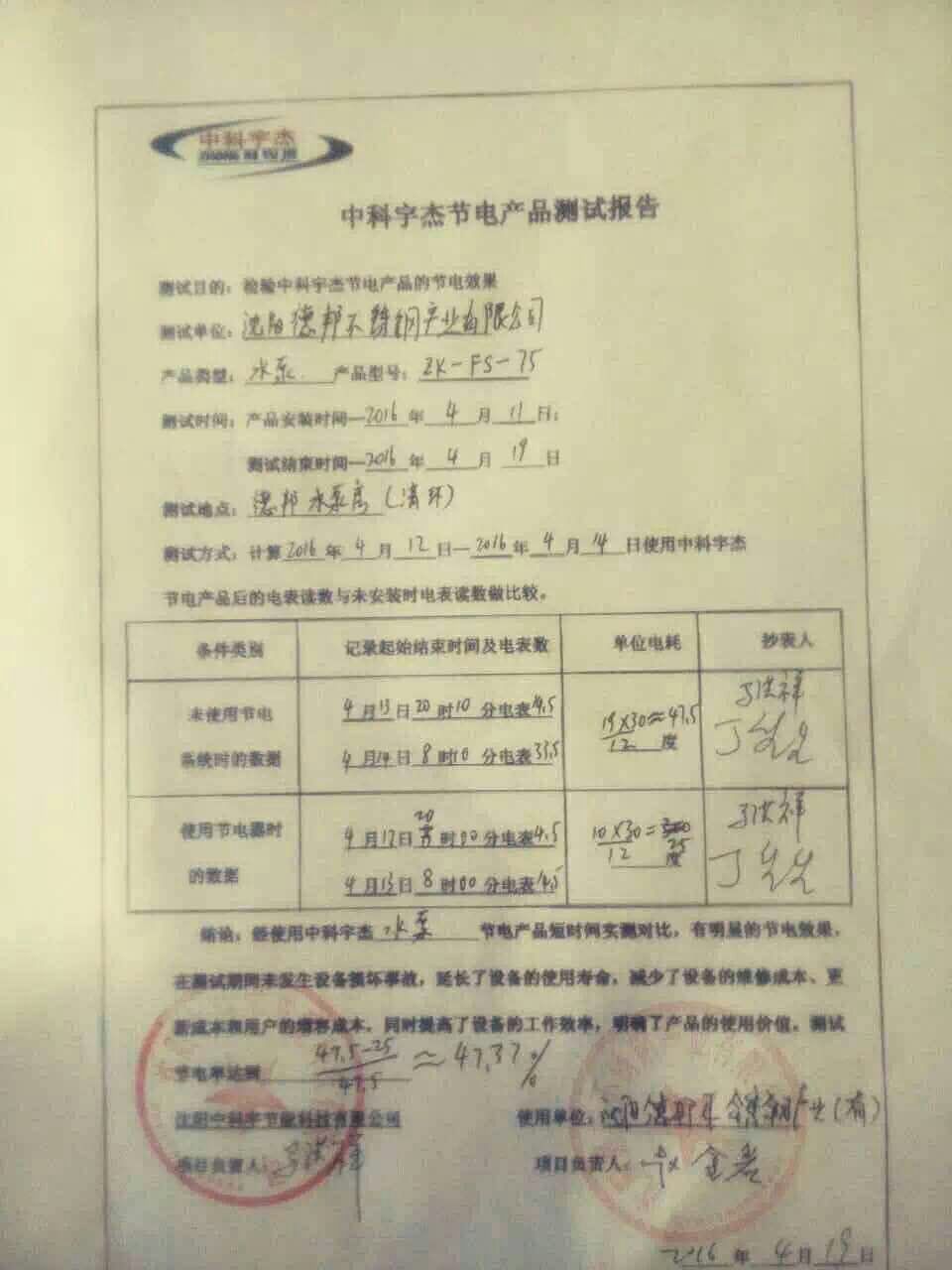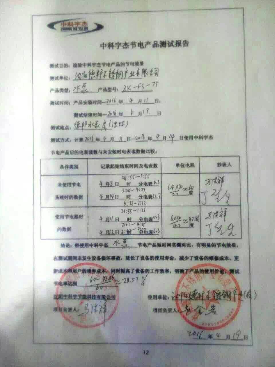安裝調(diào)試驗(yàn)收,節(jié)能效率高達(dá)47.37%。節(jié)能設(shè)備安裝后,不但完全沒有對(duì)原設(shè)備造成不良的影響,還起到了延長(zhǎng)設(shè)備壽命,減少維修成本的作用。該項(xiàng)目試點(diǎn)工程的節(jié)電效果顯著,得到了企業(yè)領(lǐng)導(dǎo)的一致認(rèn)可。